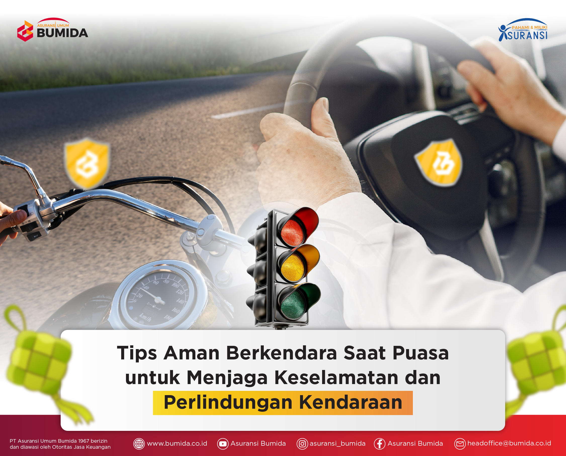 Berkendara saat puasa kerap terasa sama seperti hari biasa, padahal kondisi tubuh sebenarnya sedang bekerja lebih keras dari biasanya. Perubahan pola makan dan istirahat dapat memengaruhi fokus, refleks, hingga emosi saat berada di jalan, terutama pada jam-jam rawan menjelang sore. Melalui artikel ini, Sobat Bumida diajak memahami pentingnya mengenali batas tubuh, menjaga kondisi kendaraan, serta menyiapkan perlindungan yang tepat agar aktivitas berkendara selama bulan puasa tetap aman, nyaman, dan penuh ketenangan.
