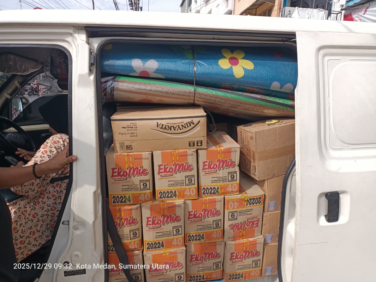 Senin, 29 Desember 2025 pukul 09.05, Tim Distribusi Bantuan Cabang Medan bergerak untuk medistribusikan paket bantuan berupa: