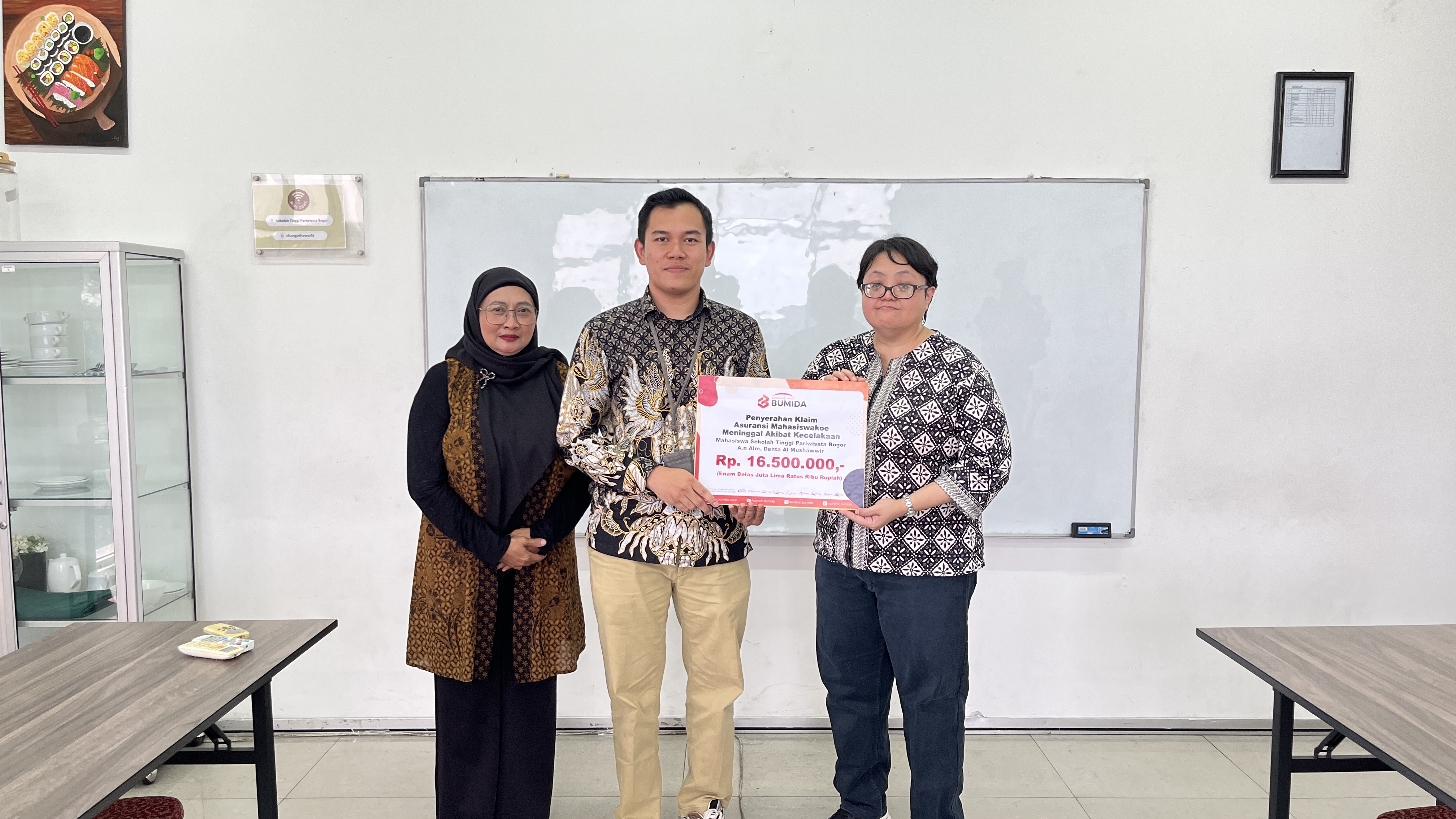 Bumida Cabang Depok Serahkan Klaim Mahasiswakoe kepada Keluarga Mahasiswa Sekolah Tinggi Pariwisata Bogor